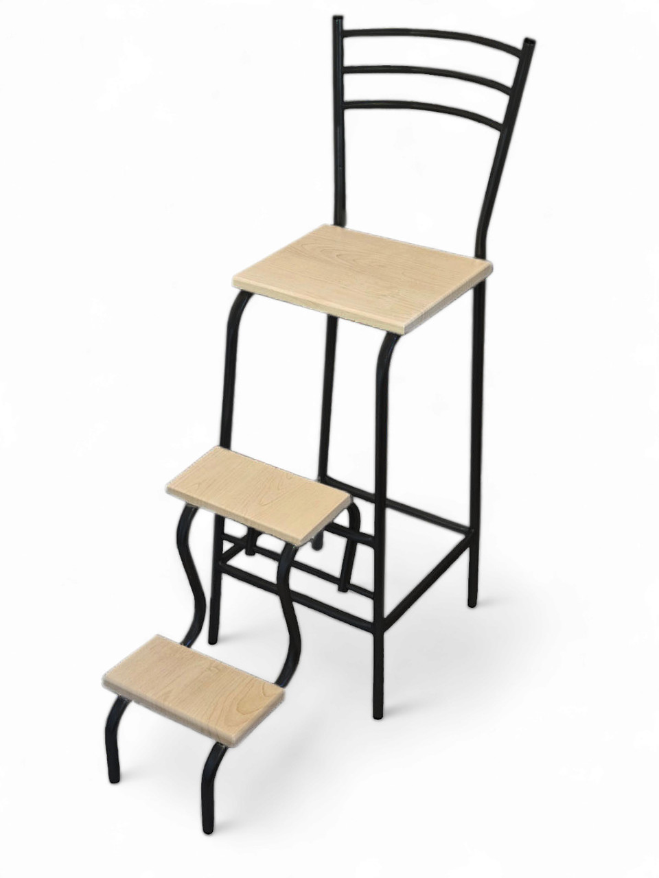 Стілець-праска трансформер зі спинкою. Ця модель повністю схожа на попередню, тільки тепер стілець драбина обладнаний ручкою (спинкою). Підйом по драбини стане ще легше, а сидіти на ньому стало ще зручніше.