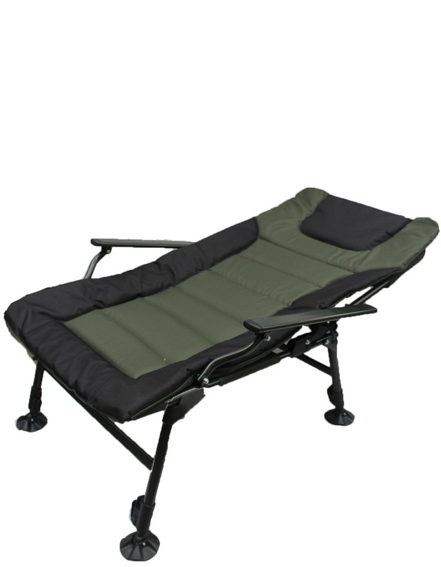 Ніжки стійкі і не занурюються в грунт, за рахунок збільшеної площі . Сталева конструкція крісла потужна і, в той же час, максимально полегшена за рахунок алюмінієвих підлокітників.